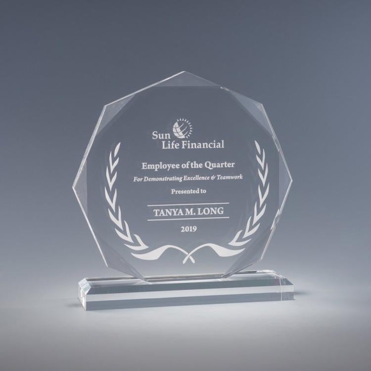 All our corporate awards offer free crystal engraving of your logo and text to add a personal touch. Engrave your company's logo, employee name, and accomplishments on our corporate crystal awards or crystal gifts for your next recognition awards, and show your appreciation for your employee's hard work and dedication.