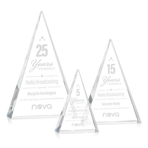 Elevate your recognition program with the Monroe Pyramid Crystal Award, a symbol of enduring strength and ambition. This award's sleek, geometric design reflects light at various angles, creating a stunning luminosity that will captivate the eyes and hearts of all honorees. Ideal for commemorating milestones or celebrating high achievers, its substantial weight and flawless clarity offer a hands-on reminder of excellence. The pristine transparency of the optical crystal provides a perfect canvas for personalized messages that are preserved with the precision of deep etch engraving. This bespoke monument of triumph comes nestled in a luxe satin-lined presentation box, ready to make a prestigious statement at any ceremony.