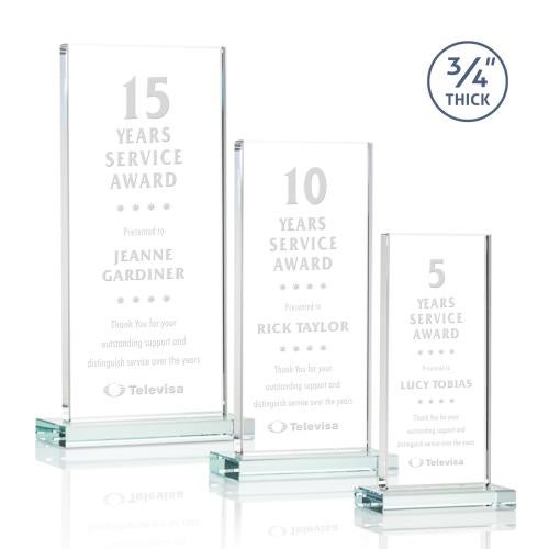 The illustrious 0.75" thick Arizona Award features an elegant Starfire Crystal mounted upright on a clear base. The large decorating area is an exceptional way to recognize a milestone achievement.