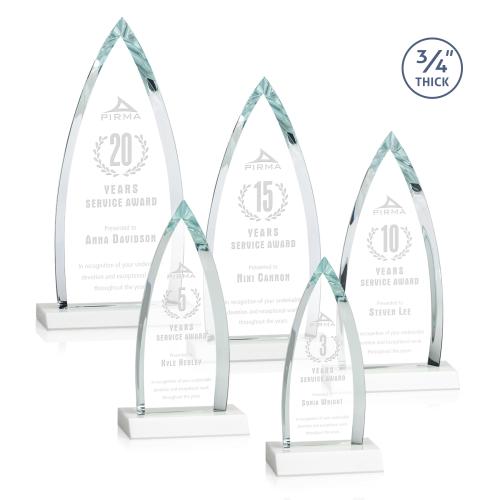 The striking Shildon Award is a 3/4" thick Starfire arrowhead with deep dramatic bevels to recognize a spectacular achievement. Mounted on an ivory crystal base. Second position etch optional.