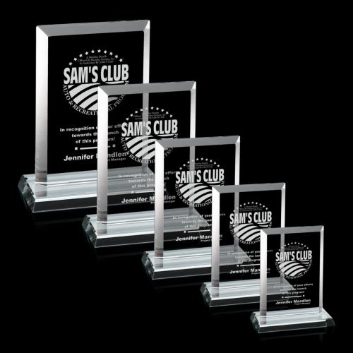 The 6" high, starfire glass Empress is the classic rectangle with deep symmetrical bevels on the front and a matching beveled base. Ideal for bold, eye-catching artwork that fills the large etching area. Also available in 7", 8", 9" and 10" versions and in jade glass.