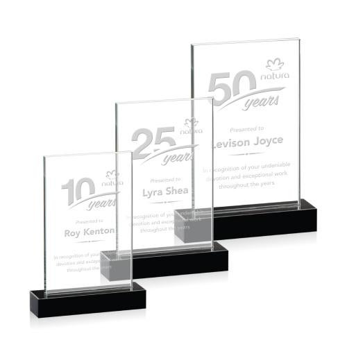 This clear Optical Crystal rectangle is mounted to a thick Black Optical Crystal base to create this classic award of timeless beauty.