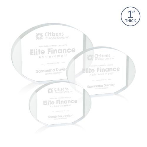 Elevate your accolades with the Darwin Circle Crystal Award â a synthesis of elegance and modernity. Each award begins as a blank canvas, awaiting your custom message to be delicately etched, creating a permanent tribute to success and achievement. The contrast of the pristine white crystal border against the luminous clear oval provides a striking visual, making it a centerpiece in any display. Designed not just to recognize but to impress, this award encapsulates excellence, making it an impeccable choice for honoring the highest standards of accomplishment.