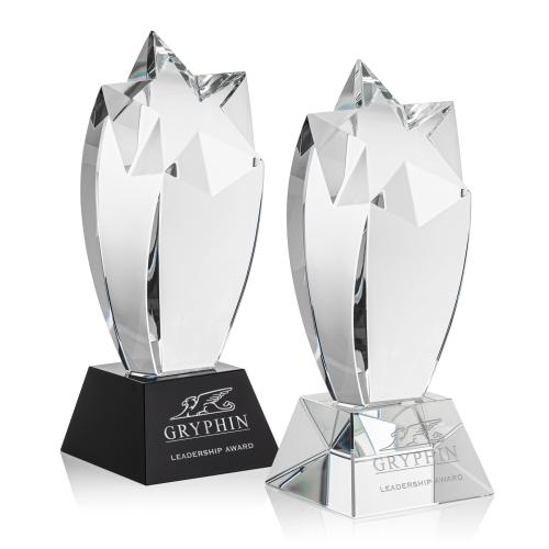 Beautiful curved Optical Crystal Shooting Star Award on a thick optical crystal base