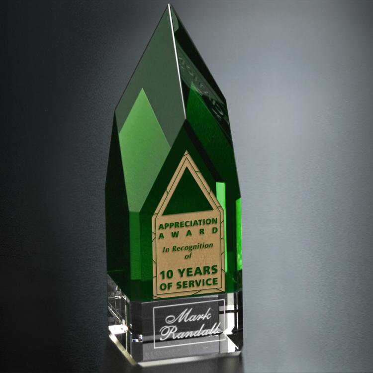 Green crystal symbolizes growth, harmony, and renewal. It is often associated with nature and balance, making it an excellent choice for awards recognizing sustainable practices, continuous improvement, and teamwork.