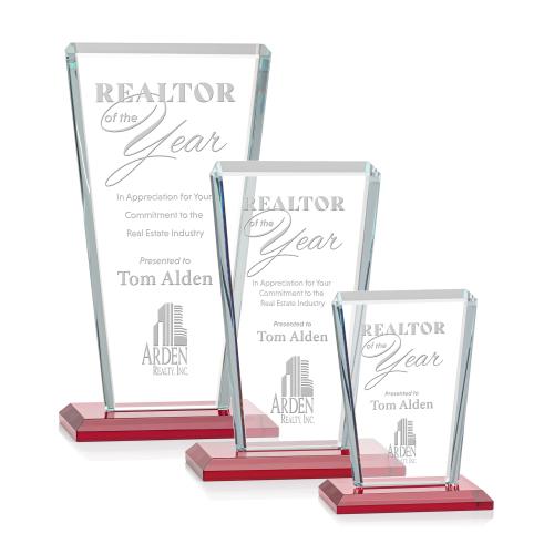 Our extraordinary beveled Starfire angular award is combined with ruby optical crystal, the latest trend in designer glass, to update a classic look with chic style.