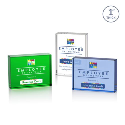 The Abbott Optical Award features a 1" thick 3" x 4" Crystal block in 8 vibrant and distinct colors. Let your message POP with full color VividPrint.
