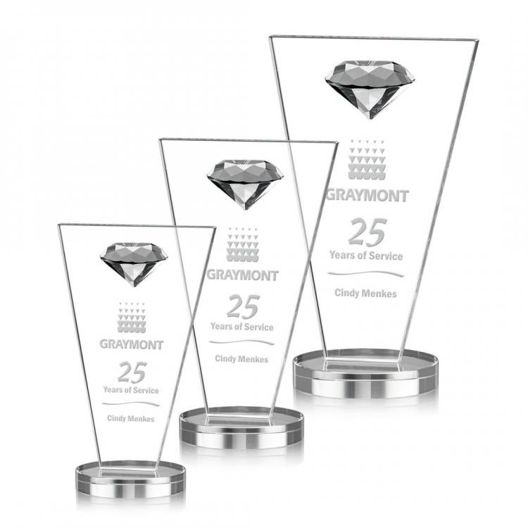 Of custom crystal awards, crystal diamond awards are almost always in demand because the diamond itself is such a strong, evocative image. It symbolizes not only beauty and stability but timelessness. Diamonds are forever, as the saying goes, and that's why our crystal diamond awards are so popular with our clients.