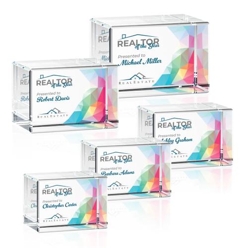 Celebrate exceptional achievement with the sophisticated elegance of the Lexington Cube Full Color Rectangle Crystal Award. Designed to impress, the optical clarity of this award magnifies the full-color VibrantPrint™ decoration, ensuring your personalized message or logo bursts with color and life, exuding excellence and recognition. Perfect for corporate honors, academic accolades, or team triumphs, this premium Crystal monument aligns seamlessly with the recipient's pride and the event's prestige. Its classic shape and polished beveled edges create a timeless centerpiece that promises to elevate any display and commemorate success with the distinction it deserves.