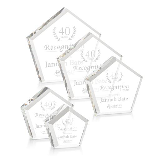 The Genosee Award is a sparkling faceted extra-thick Optical Crystal pentagon with a large window for decorating your words of encouragement and inspiration. A marvelous award to recognize a spectacular achievement.