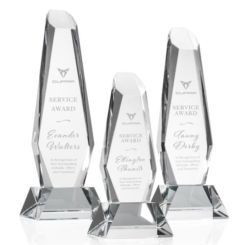 The Rawlinson Award is a monolithic optical crystal statue of excellence. With angular, beveled sides and top, this dazzling recognition sculpture is a sight to behold. Available in freestanding or with a clear or colored optical crystal base.