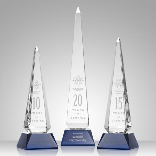 Elevate the celebration of accomplishments with the Helmsley Obelisk - Blue, exuding elegance and sophistication. This piece stands as a true testament to excellence, with its sleek obelisk design soaring upward, symbolizing growth and success. The Optical Sapphire Base pulsates with a deep blue hue, reminiscent of a sky at dusk, adding a touch of serene beauty. Perfect for personalization, the award's face invites custom inscriptions to honor individual achievements or team milestones. Its commanding presence makes it an ideal centerpiece in any display case or desk, sure to inspire awe and appreciation for years to come.