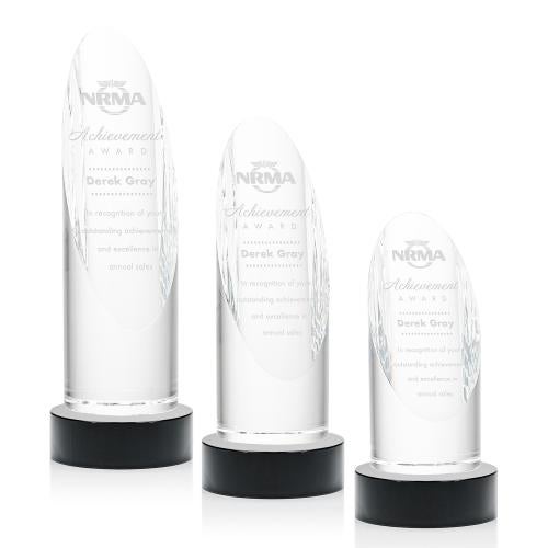 The Optical Crystal Lauder Award is a grand gesture of appreciation. This marvelous award features an elongated oval face on a cylindrical pillar with ample space for deep etching your message. Mounted on a beautiful ebony round crystal base. Second-position etch and colorfill are optional. Packaged in a black satin-lined presentation gift box.