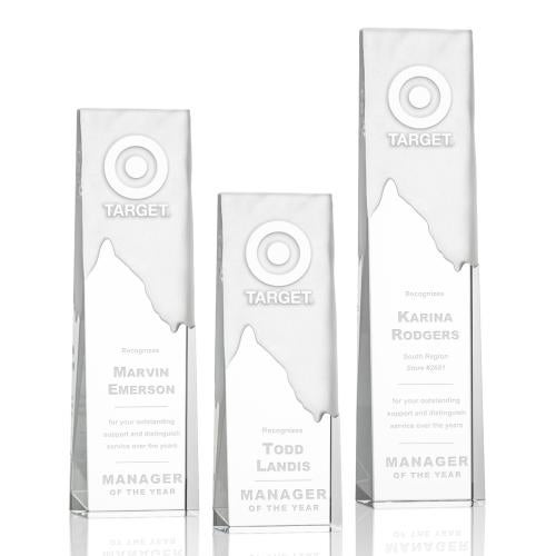 Embodying a sleek and statuesque form, the Rushmore Obelisk Crystal Award is the epitome of achievements set in stone. This pristinely cut award captures the spirit of success, offering a tangible symbol of recognition that stands the test of time. With its reverse frosted mountain peak design, it provides a sophisticated backdrop for your custom logo, which can be etched with precision to commemorate excellence in any sphere. Suitable for a variety of honors, from corporate recognition to personal milestones, it is a gift that conveys the weight of accomplishment with its timeless elegance and is sure to take pride of place in any recipient's collection.