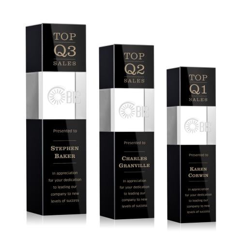 A sharply contrasting award, the Araceli intersects deep ebony crystal with a towering, clear panel optimized as the perfect imprinting area to spotlight your recognition message. Includes 3 position Deep Etch and single colorfill on top and bottom.