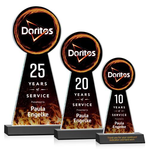 The Laidlaw VividPrint Tower Award features beautiful Starfire Crystal with a large circle at the top that can be used in a myriad of ways. This multi-purpose award is perfect for sports, years of service or to highlight your brand when recognizing excellence. Mounted on a front-mitered Optical Crystal base in your choice of color. Packaged in a black satin-lined presentation gift box. Second location imprint optional.