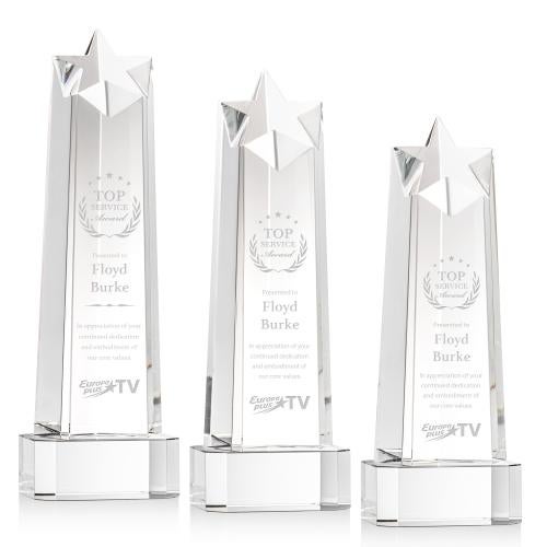 The Delaware Star Award on Base is an inspiring monument to recognize a rising achievement. This stunning award features Thick Optical Crystal with a star shape cut out at the top and is mounted on your choice of emerald, sapphire, ebony or clear Optical Crystal Base. Reward an exceptional star performance with this pillar of crystal recognition. Packaged in a black satin-lined presentation gift box.