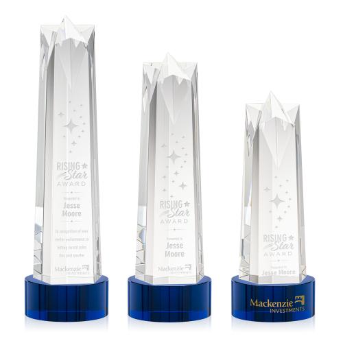 Radiating brilliance and prestige, the Ellesmere Star on Marvel Base - Blue stands triumphant as a token of excellence. Embellished with the sapphire-hued crystal base, the award evokes a striking presence that instantly captures the eye and the imagination. With the potential for custom engraving, this award can encapsulate the essence of achievement, dedication, or milestone moments that is both tangible and timeless. Ideal for corporate recognition, scholastic achievements, or any momentous occasion, this piece not only highlights success but also inspires the pursuit of greatness. The unique obelisk silhouette adorned with the star conveys a message of soaring heights and celestial accomplishments.