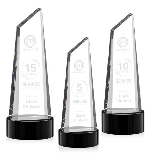Incorporate the essence of achievement into your recognition events with the Akron Tower on Base - Black, a symbol of towering success and steadfast determination. The sleek and contemporary obelisk design is not just a trophy, but a piece of art that complements any setting, while its robust crystal base ensures it stands with prominence. The award's faceted surfaces offer a dance of light and shadow, bringing its clarity and refinement to the fore. Customizable to celebrate various milestones, it is an ideal choice to honor excellence in corporate accomplishments, academic triumphs, or personal milestones, making every accolade a cherished memory.