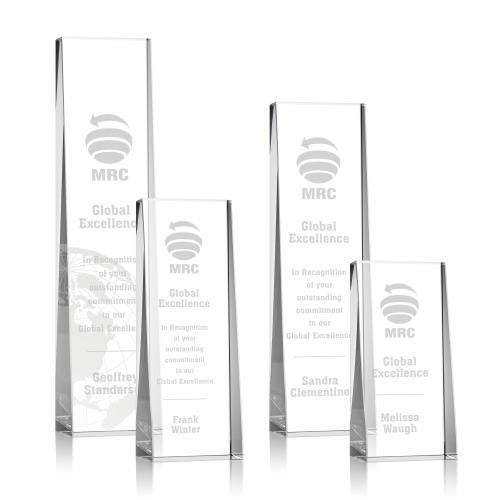 The impressive Milnerton Optical Crystal Award is a freestanding tower with a slanted front to showcase your exceptional accomplishment. A striking monument for achievement recognition.