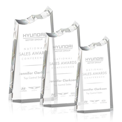 The Sebastiana is an illustrious, thick free standing Optical Crystal award. Its deep beveled sides and wave-cut top add to the award's elegance.