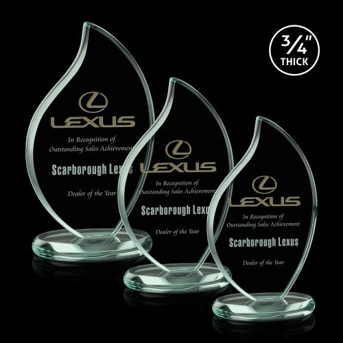 This classic award features a 3/4" thick Jade Crystal Flame with rounded edges and mounted on a matching rounded oval base. An elegant award to recognize a great achievement or momentous event.