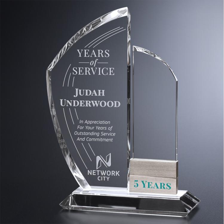 • Acrylic service awards: Durable, contemporary and highly customizable, acrylic awards are a sleek and cost-effective solution for a wide range of recognition tiers.