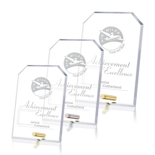 The Cantebury Clipped Rectangle Crystal Award embodies elegance and recognition in its purest form. Its clear, pristine surfaces offer an ideal backdrop for personalized messages, making it an exemplary choice for honoring milestones and successes. The stylish clipped corners add a touch of sophistication, enhancing the overall aesthetic and making it a standout piece on any shelf or desk. The crystal's high-quality composition ensures a weighty and luxurious feel, while the choice of contemporary chrome or classic gold pins allows for a customized look that aligns with the recipient's achievements. This award is not just a token of appreciation, but a lasting symbol of excellence that will be cherished for years to come.