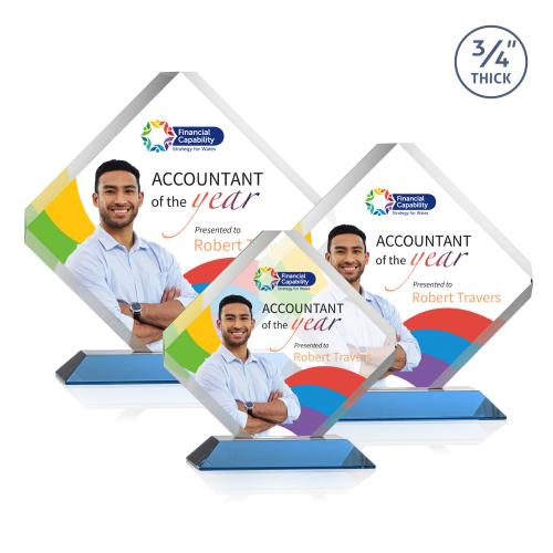 Elevate the prestige of your accolades with the Toulon Full Color Sky Blue Diamond Crystal Award. The eye-catching sky-blue base enhances the vibrant full-color personalization, making it a striking centerpiece for any desk or shelf. Seamless Vividprint™ technology allows you to immortalize accomplishments with sharp, high-resolution imagery and text that will not fade over time. This polished crystal tribute not only honors achievements but also serves as an inspiration for continued excellence, making it an ideal choice for corporate recognitions, academic honors, or personal milestones. Witness pride and motivation soar as this radiant award becomes a cherished symbol of success.