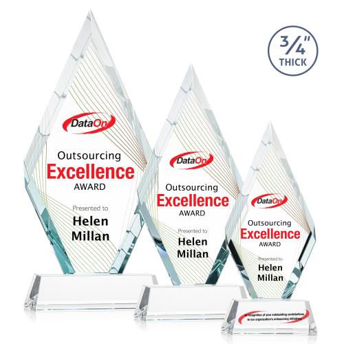 The Richmond Full Color Clear on Newhaven Diamond Crystal Award is a stunning testament to achievement and recognition. With its full-color capabilities, personalize this award with vibrant and detailed logos or accolades that will catch the eye and honor the recipient in full splendor. The lustrous facets of the diamond shape reflect light brilliantly, symbolizing the outstanding qualities of the awardee. This award is not only an exquisite memento but a professional piece that conveys deep appreciation and respect. Ideal for corporate recognition, academic honors, and notable accomplishments, it's the perfect blend of sophistication and customized celebration.