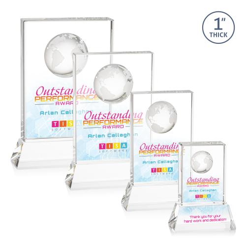 Celebrate global success with our Optical Crystal Ambassador Globe VividPrint Award on Base, featuring a striking 3D world Globe molded into the back for a truly distinctive touch. Mounted on a tall tapered base in your choice of 8 colors. Perfect for recognizing international accomplishment. Let your artwork shine with full-color VividPrint!