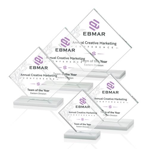 Our Wellington awards feature a Starfire Crystal diamond mounted onto a brilliant White flat edged base for a contemporary twist on a classic award. Let your message POP with full color VividPrint.