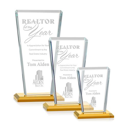 Our extraordinary beveled Starfire angular award is combined with amber optical crystal, the latest trend in designer glass, to update a classic look with chic style.