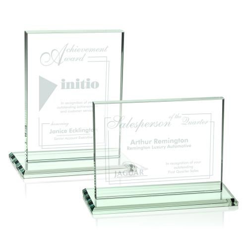 The Emperor Award is a simple yet elegant 1/2" thick Jade Crystal rectangle upright mounted vertical or horizontal on a jade crystal base. An ideal award featuring a large decorating area to recognize a significant achievement. Available in Starfire, see associated items.
