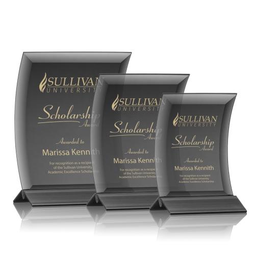 The Dominga Black/Black Arch & Crescent Crystal Award embodies sophistication and prestige, designed to honor excellence and achievement with its stunning interplay of materials. The sleek, opaque glass arcs gracefully above the sturdy aluminum base, offering a canvas for customization. Your recipient's name and accolades, etched in shimmering gold, stand out against the obsidian backdrop, creating a powerful statement of recognition. Ideal for corporate accolades, academic honors, or personal milestones, this award will serve as a lasting symbol of distinction and a sophisticated addition to any display.