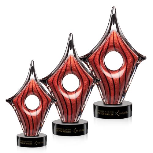 Show your gratitude and appreciation with the stunning Rialto award. Recognize your star performer with this individually hand blown work of art. Red speckles and black flourishes lay within the glass to create a truly spectacular affect. Available in 3 sizes.
