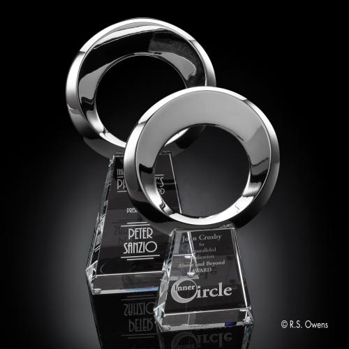 The cast metal ring of the Boundless was designed to capture the limitless spirit of a never-ending circle, illustrating your achievement with infinite possibilities. The circle is mounted to a large plinth of optical crystal bringing sparkling light to the sculpture above.