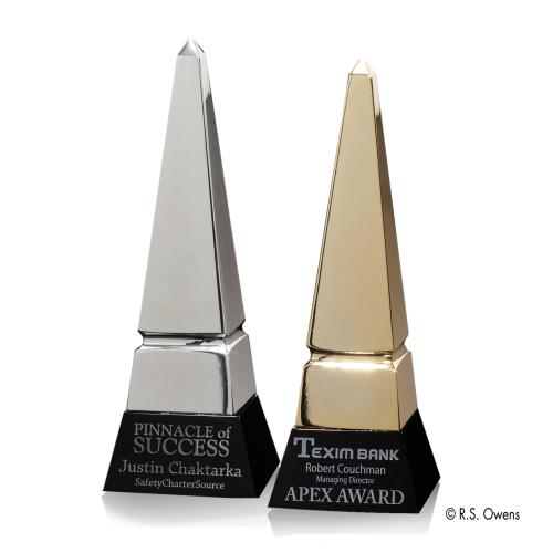 Elevate the moment of achievement with the Apex Obelisk Metal Award, a symbol of monumental success. Our obelisk awards, with their towering presence and exquisite metallic finishes-available in both silver and gold tones-represent the pinnacle of dedication and excellence. The sleek lines and mirrored surfaces catch the light dynamically, creating a display that commands attention in any setting. The sturdy, ebony crystal base provides a generous area for personalization, allowing you to deep etch a message of recognition and honor, coupled with a touch of color for contrast. This award is not merely given; it tells a story of aspiration and hard-earned triumph.
