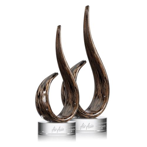 An extravagant swoop of black glass and metallic gold reflect your accomplishments with astounding flair. Complete with a complimenting Optical Base for personalization with a Logo or Name