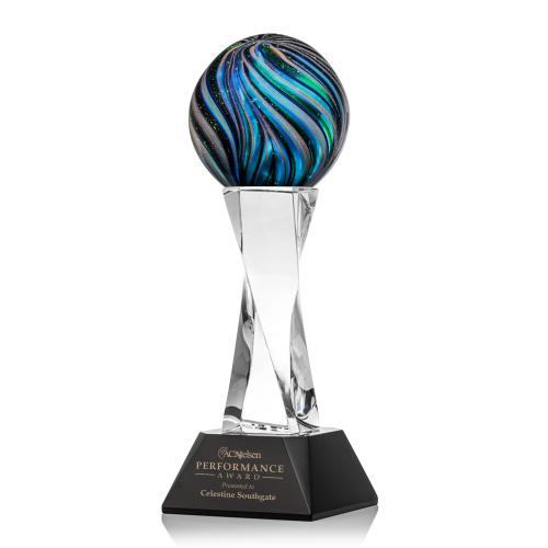 The Malton Award on Langport Base is a stunning hand-blown work of art, complete with a complimenting base for personalization with a logo or name. This sparkling award features swirls of iridescent gold, ebony, sapphire, and emerald, perfect for recognizing a special achievement. Each piece is individually Hand-crafted and no two pieces are identical.