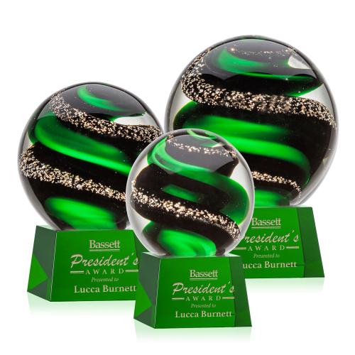 Celebrate excellence with the captivating Zodiac Green on Robson Base Spheres Glass Award, a symbol of achievement that reflects aspiration and distinction. The verdant swirls and cosmic speckles within each sphere tell a unique story, much like the stars in a zodiac constellation. Perfect for recognizing stellar performance, this award represents a connection to nature and the universe beyond. Enhance this striking token of recognition with personalized engraving, ensuring that each honoree feels truly special. Ideal for corporate accolades, educational achievements, or any ceremonial honors, let this handcrafted masterpiece be the pinnacle of your celebration.