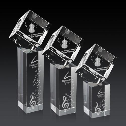 A perfectly polished 3 Dimensional cube made from the purest Optical Crystal. Features a subtle single beveled edge all around. Let this recognition piece shine as an award, paperweight or momento for your desk or shelf. Mounted on our Optical Dakota base.