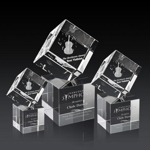 A perfectly polished 3 Dimensional cube made from the purest Optical Crystal. Features a subtle single beveled edge all around. Let this recognition piece shine as an award, paperweight or momento for your desk or shelf. Complete with a cubed Clear Optical Crystal base.