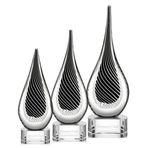 This amazing hand blown Artglass award features a black core enclosed by white swirls creating an entrancing effect. Available in 3 sizes clear base.