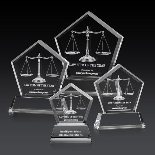 The Genosee Dimensions 3D award features a thick optical crystal pentagon with a beveled frame and large window to embed your message of recognition excellence right into the crystal. A striking award to commemorate an exceptional achievement or special anniversary. Mounted on your choice of tall tapered optical crystal base in 8 distinct colors. Second Position Etch Optional.