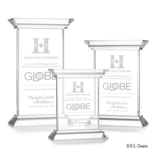 The Doric Rectangle Crystal Award is an embodiment of elegance and sophistication, ideal for commemorating success and excellence. With its clean lines and prismatic edges, this award captures and reflects light, creating a stunning visual spectacle from any angle. The deep etched customization offers a personal touch, seamlessly integrating recognition with timeless beauty. This award is not only a symbol of achievement but also a work of art that will be treasured for years to come. Its classical yet contemporary design ensures that it fits perfectly in any professional setting, from boardrooms to gala events.