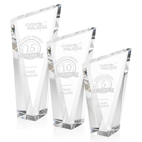 The Plymouth Peak Crystal Award embodies the pinnacle of achievement, bringing a touch of splendor to any recognition event. Precision-crafted to catch and reflect light with its prismatic base, it stands as a testimony to excellence and dedication. The deep etch decoration offers a personalized touch, showcasing the recipient's name and honor in a manner that complements the clarity and brilliance of the crystal. A prestigious choice, this award turns triumphant moments into lasting memories, perfect for celebrations of extraordinary accomplishments in corporate, academic, or personal arenas.