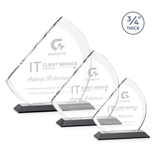 The contemporary Nantucket Award is made from thick 3/4" Starfire Crystal with contrasting deep bevels that rise to a flat edge. This striking work of recognition is mounted on an ebony crystal base and is a magnificent award to honor a top performer.