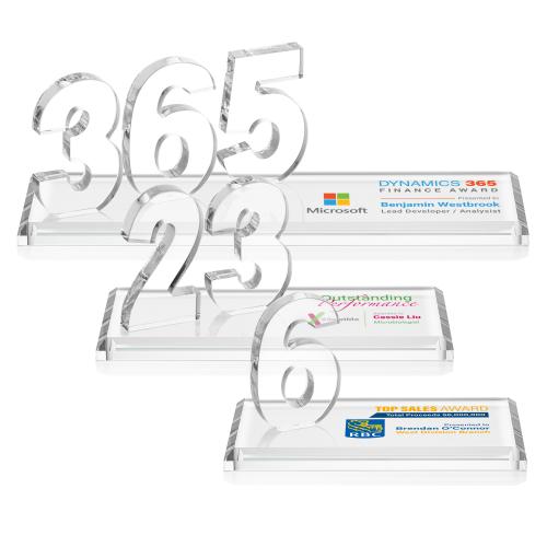 Celebrate an important milestone with the Northam Milestone VividPrint Awards. Personalize the award with one, two, or three Starfire Crystal digits, allowing you to commemorate specific milestones, years of service, or any numerical achievement that deserves acknowledgment. Numbers sit atop your choice of clear or colored crystal base.