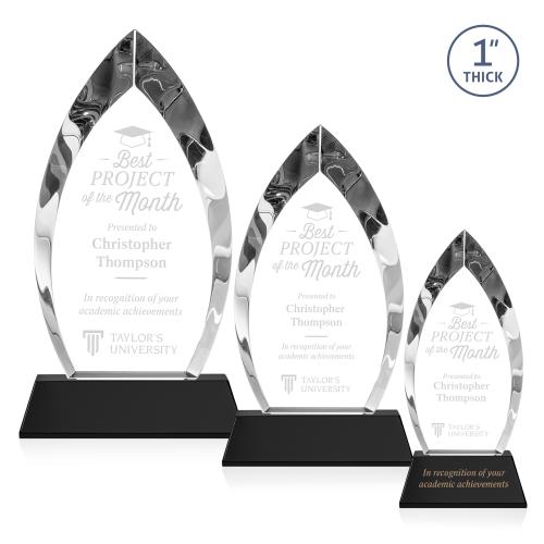 Make a statement of distinction with the Optical Crystal Marinello Award on base, boasting deep bevels that exude elegance. The color crystal accent at the bottom of the awards reflects throughout the award captivating attention and adding a unique touch to any recognition ceremony. Matching base available in your choice of 9 different colors. Presented in a sleek black satin-lined gift box. 2nd position on base is optional.
